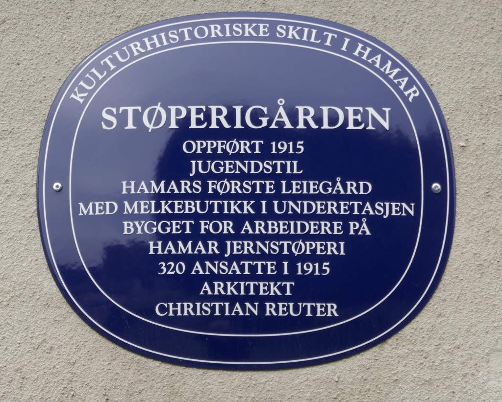 Den flotte jugendgården ble oppført i 1915, og var da Hamars første leiegård. Gården hadde opprinnelig 19 leiligheter og det var melkebutikk i underetasjen. Det ligger jo i navnet; gården ble bygget som arbeiderboliger for Hamar Jernstøperi & mek. Verksted, som ble etablert i 1885, og lenge var en av byens største arbeidsplasser. Arkitekt var Christian Reuter, som også står bak en rekke andre sentrale bygg i Hamar; Villa i Arvesens veg 22, Torggata 13 og 24 (Godagergården). Reuter opererte innenfor historismen, hovedsakelig med nyrenessanse og nybarokk, skjønt også jugend og dragestil forekommer.