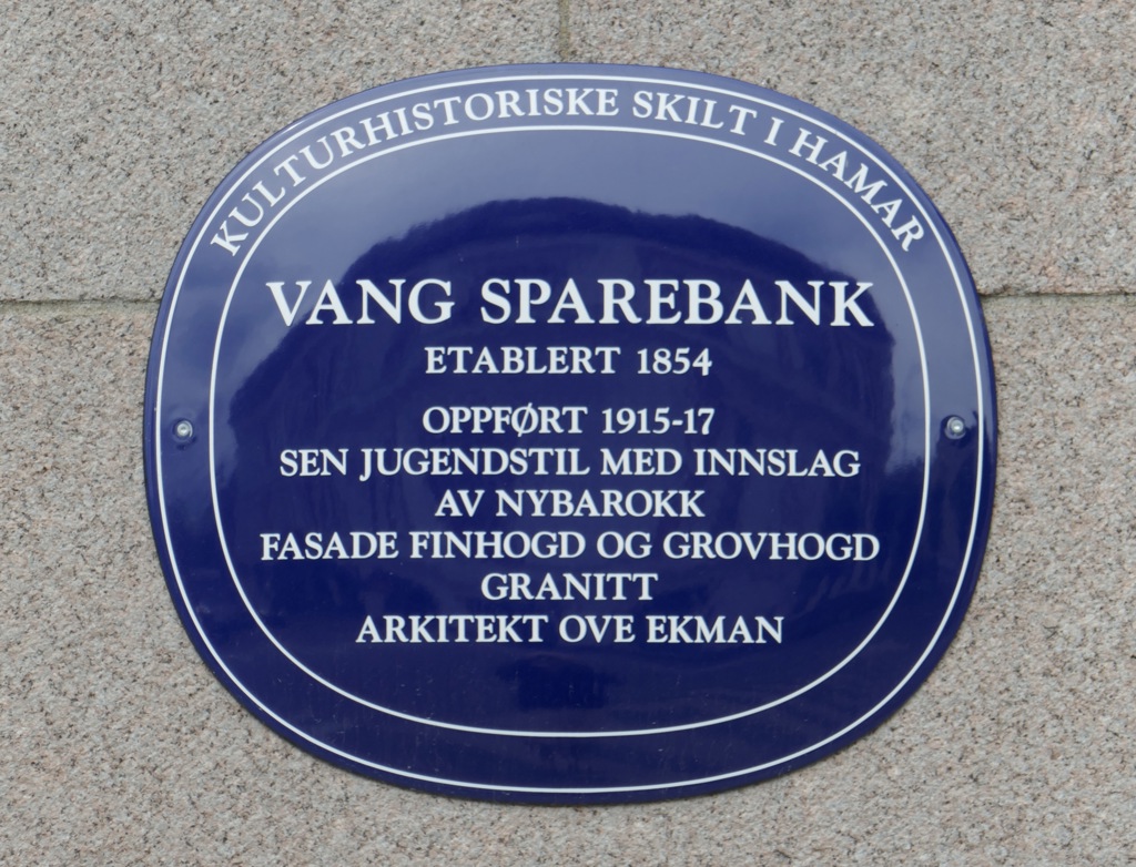Blått skilt Vangs Sparebank